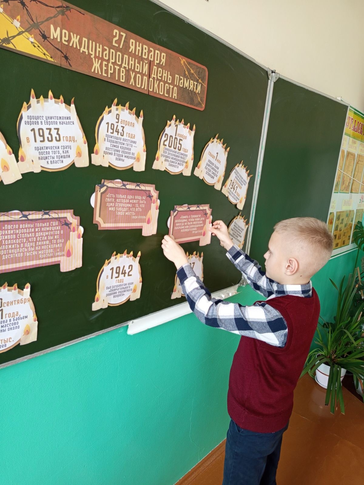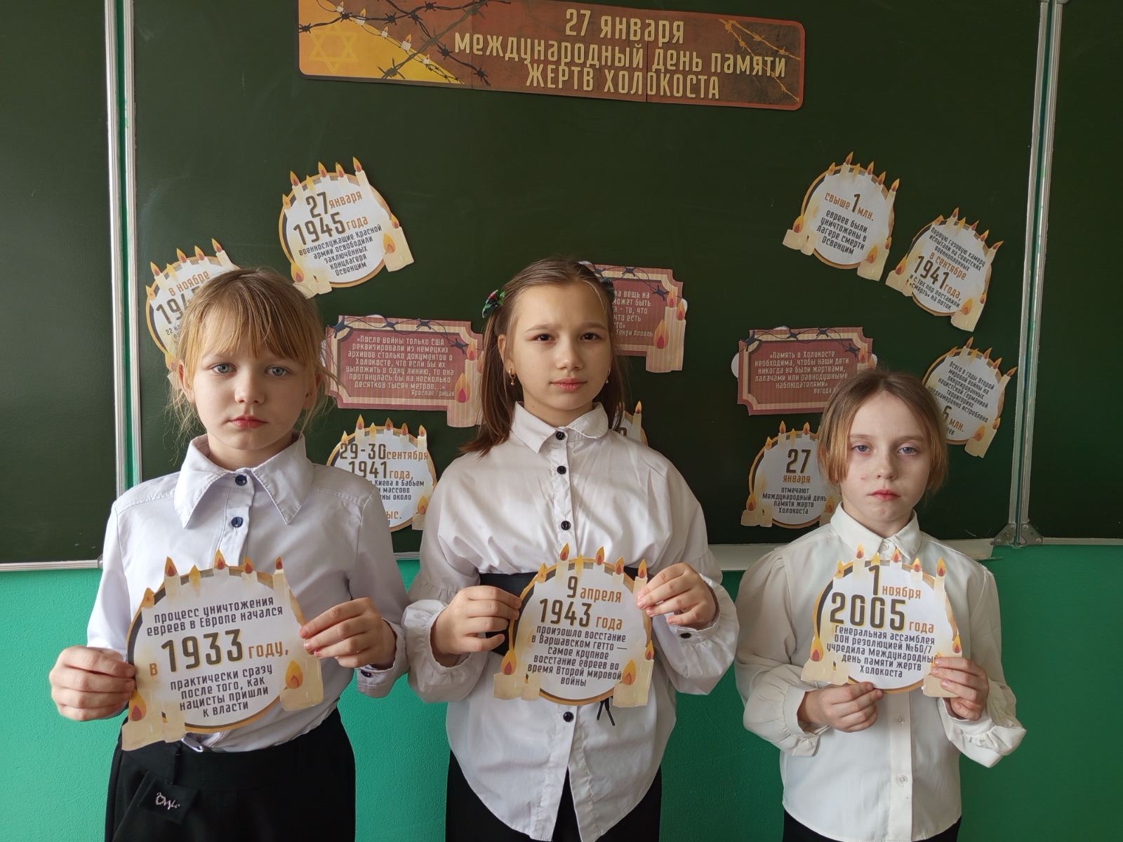 Дата связана с историческим событием: 27 января 1945 года советские войска освободили самый крупный гитлеровский концлагерь Аушвиц (Освенцим). Дети узнали о роли, значении, месте этого события, его влиянии на развитие исторического процесса. Мероприятие сопровождалось показом слайдов, видеофрагментов, выдержками из литературных произведений.