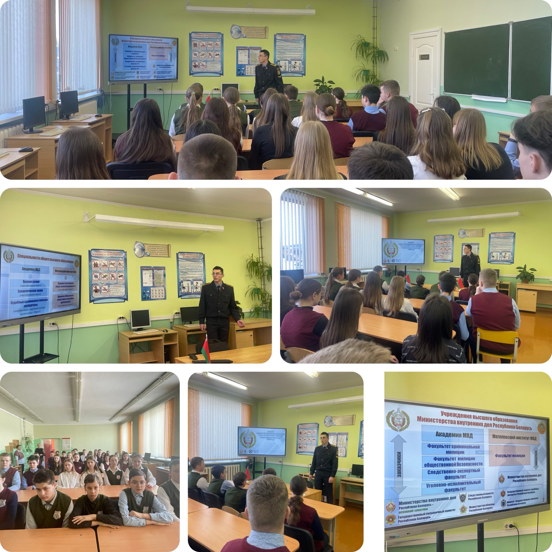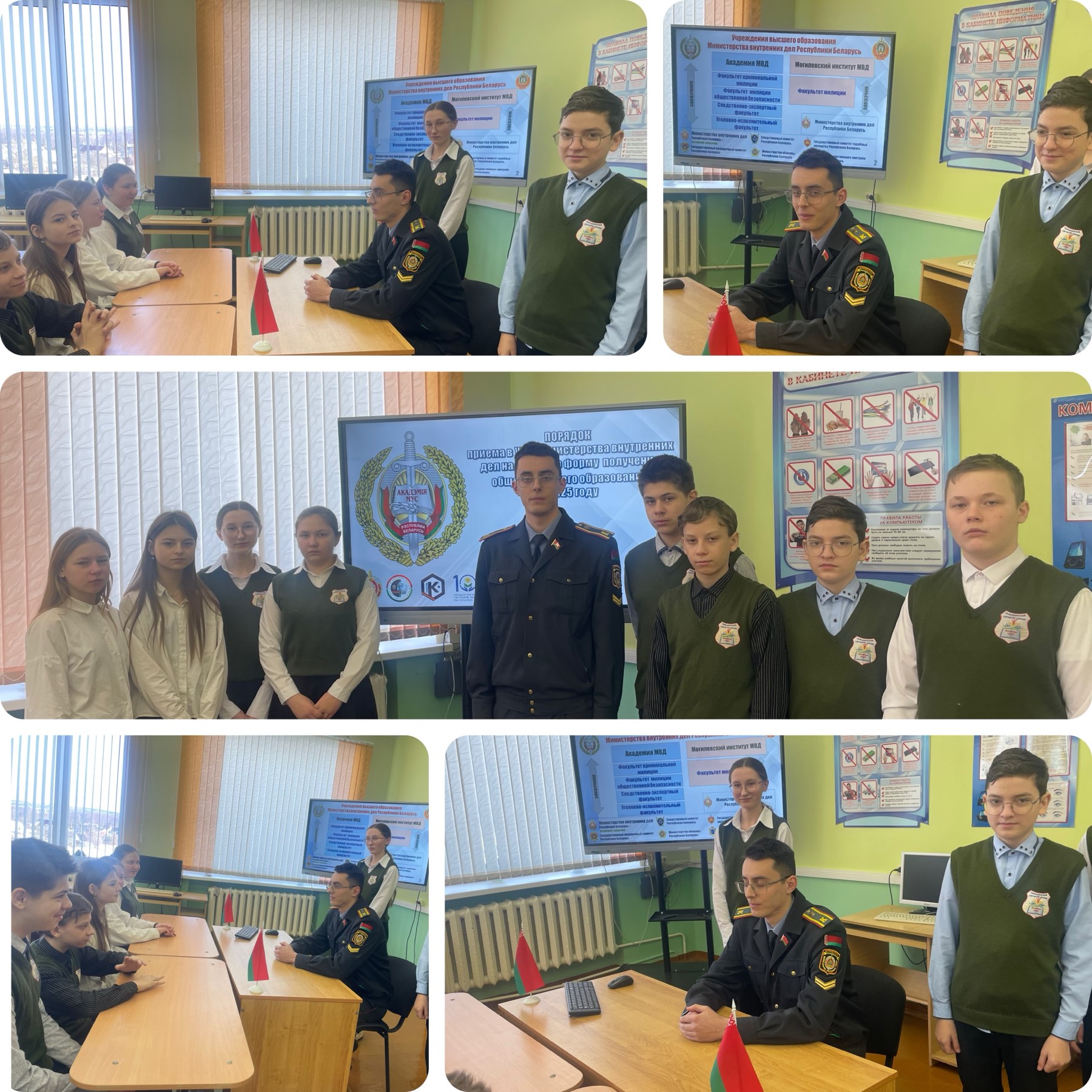 Ребята были ознакомлены со специальностями академии, особенностями оформления необходимых документов, условиями подготовки курсантов, спецификой и перспективой службы выпускников в практических подразделениях органов внутренних дел и других силовых структурах Беларуси, понятиями офицерского долга и чести. Учащиеся получили ответы на все вопросы, связанные с поступлением, с особенностями обучения, проживания. Встреча прошла с большим интересом и пользой для учащихся.
