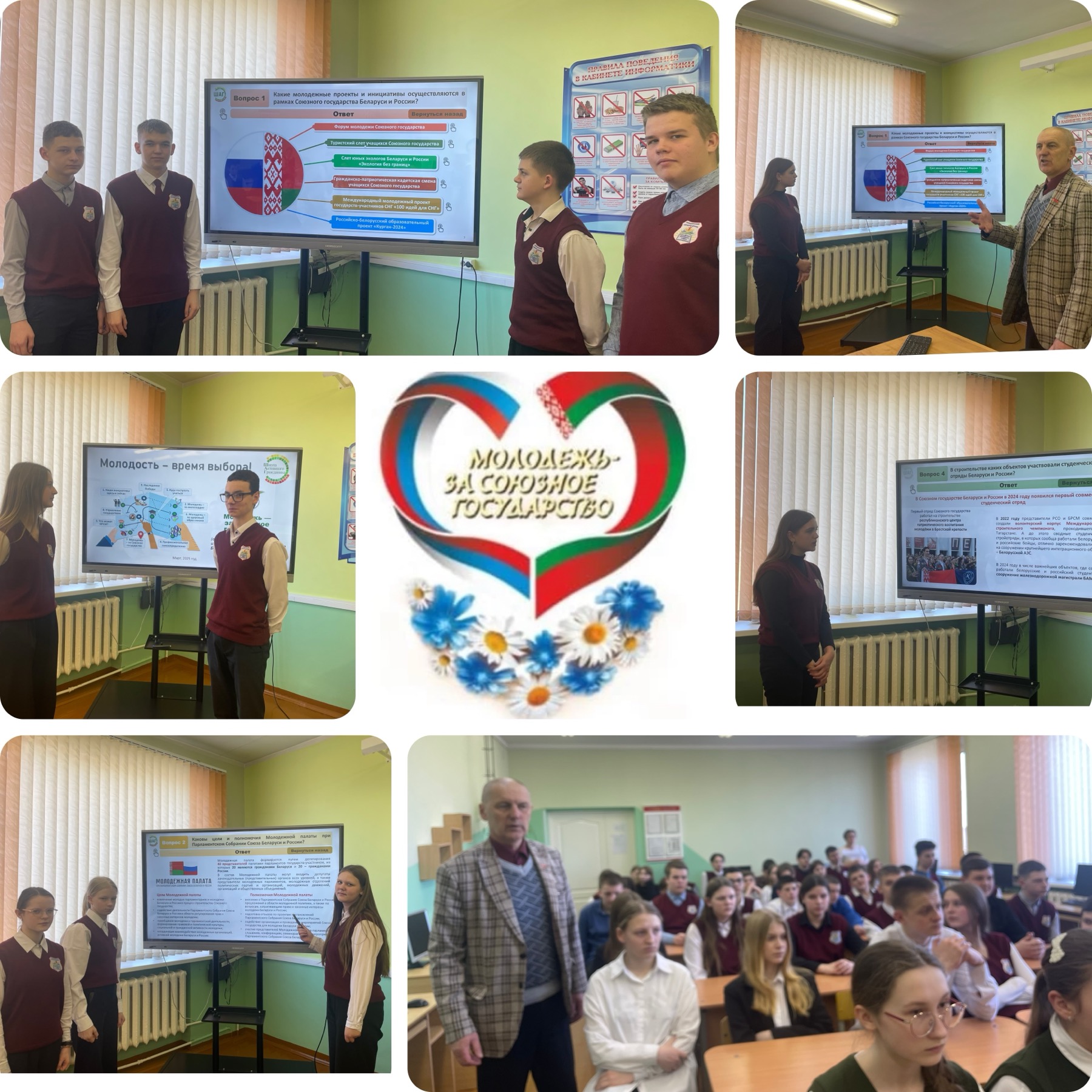 В рамках второго этапа “Мы размышляем” Игорь Викторович, выступая перед учащимися, подчеркнул, что «осознание своей роли в обществе – это первый шаг к активному участию в жизни страны». Он отметил, что молодёжь должна не только быть информированной, но и готовой к действиям, которые могут повлиять на будущее. Игорь Викторович рассказал ребятам об истории создания Союзного государства России и Беларуси и совместных проектах, которые реализуются на благо жителей двух государств.