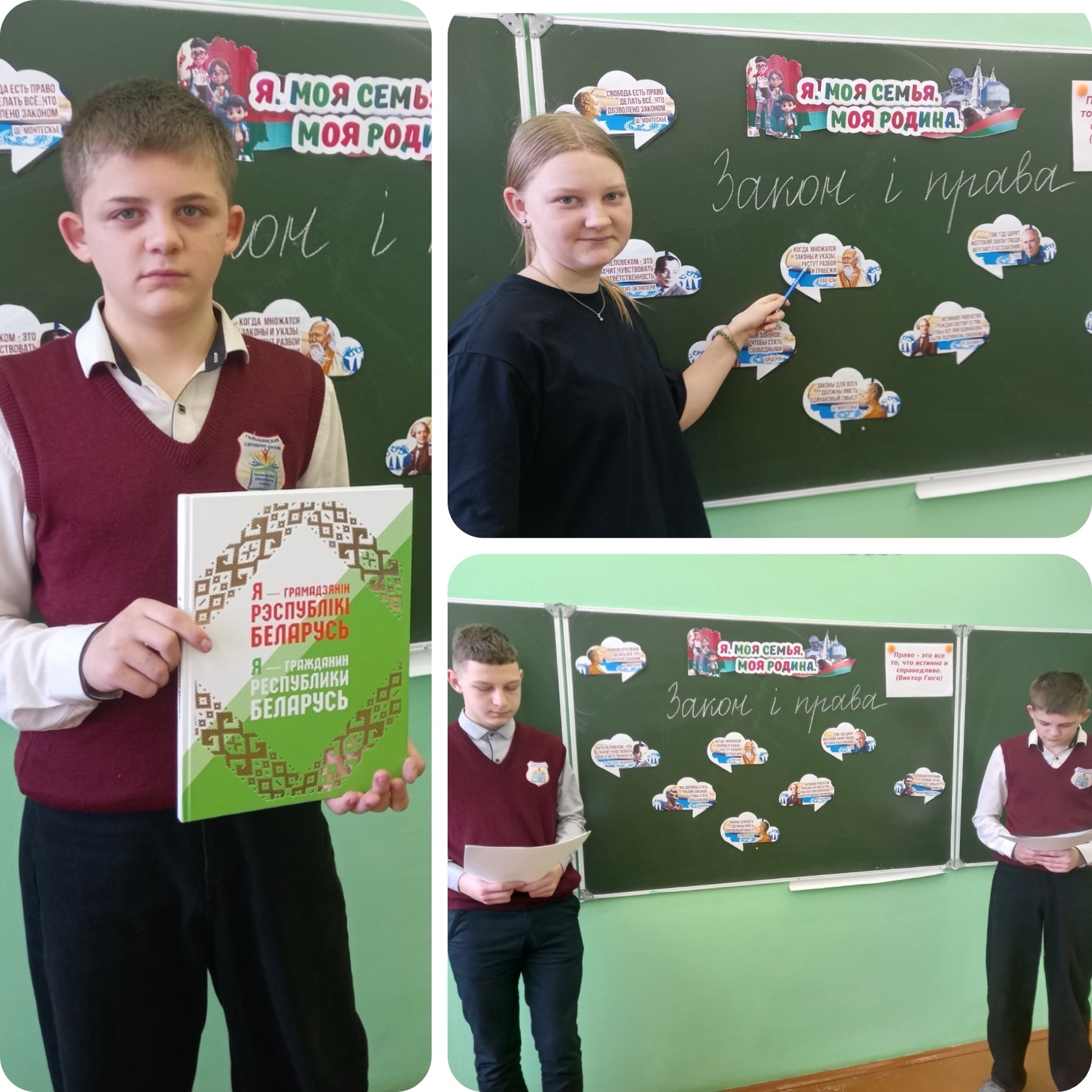 21.03.202526.03.2025 admin ребята обсуждали тему «Закон и право»: почему нужно соблюдать законы, чем ограничены наши права, ответственность несовершеннолетних за правонарушения. Навигация по записи ← 21 марта 2025 года учащиеся, педагоги ГУО «Гольшанская средняя школа» Ошмянского района приняли участие в митинге-реквиеме в честь жертв Хатынской трагедии. Учащиеся 1-5 классов ГУО «Гольшанская средняя школа» посетили сельский клуб аг.Гольшаны, где состоялось торжественное открытие Недели детской и юношеской книги«День за днем с книгой время проведем». →