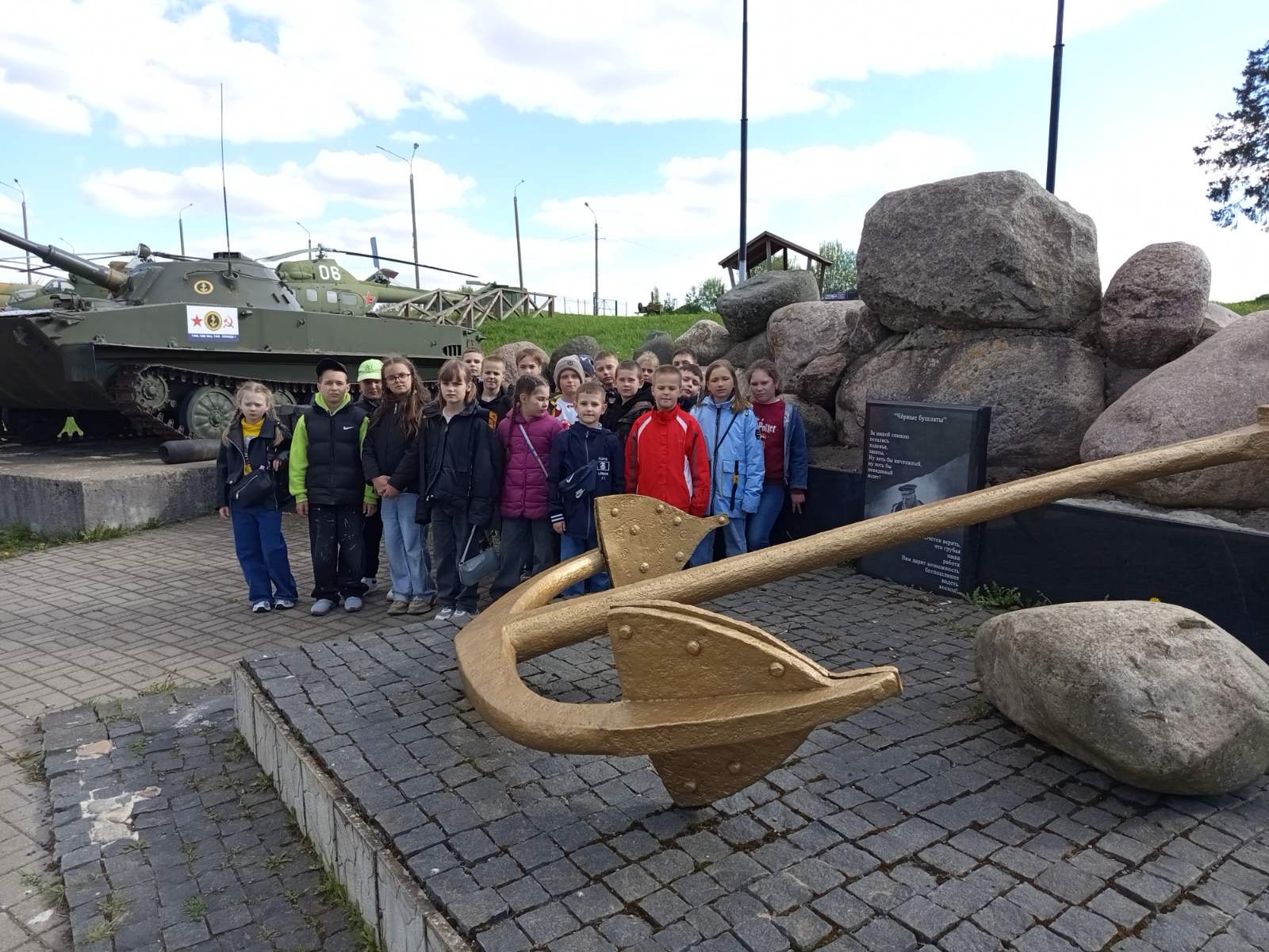 Путешествие началось с осмотра самого комплекса. Начав с изучения различных бункеров и подземных ходов, ребята окунулись в атмосферу Великой Отечественной войны. Экскурсовод рассказывала о событиях войны, жизни солдат на передовой. Впечатляющими были экспозиции и площадки с военной техникой: восстановленные танки, самолёты, пушечные установки, настоящий бронепоезд и броневагоны.