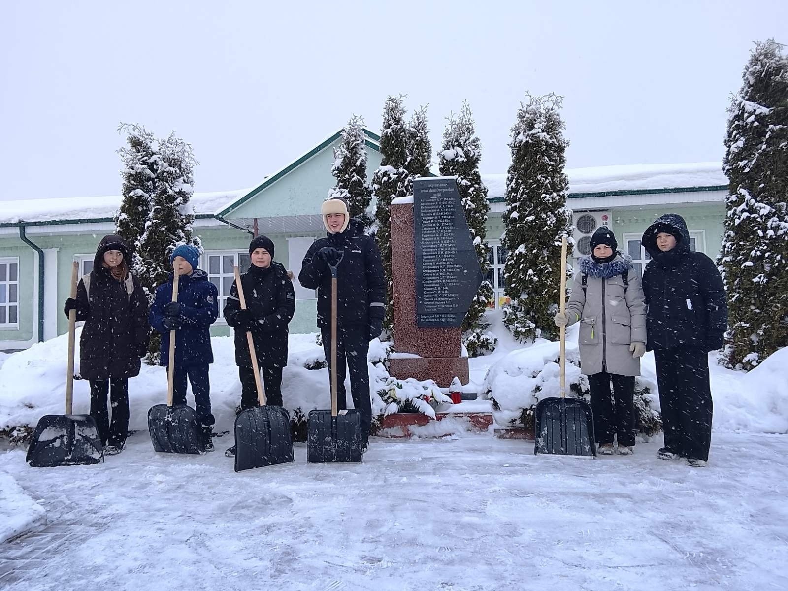 28.01.202630.01.2026 admin Убрали снег на территории Обелиска воинам-землякам аг. Гольшаны. Навигация по записи ← В рамках Международного дня памяти жертв Холокоста для учащихся 5-11 классов были продемонстрированы документальные фильмы «Дети войны» и «Концлагерь на улице Широкой г.Минска» 29 января 2026г. прошел информационный час в рамках программы ШАГ →