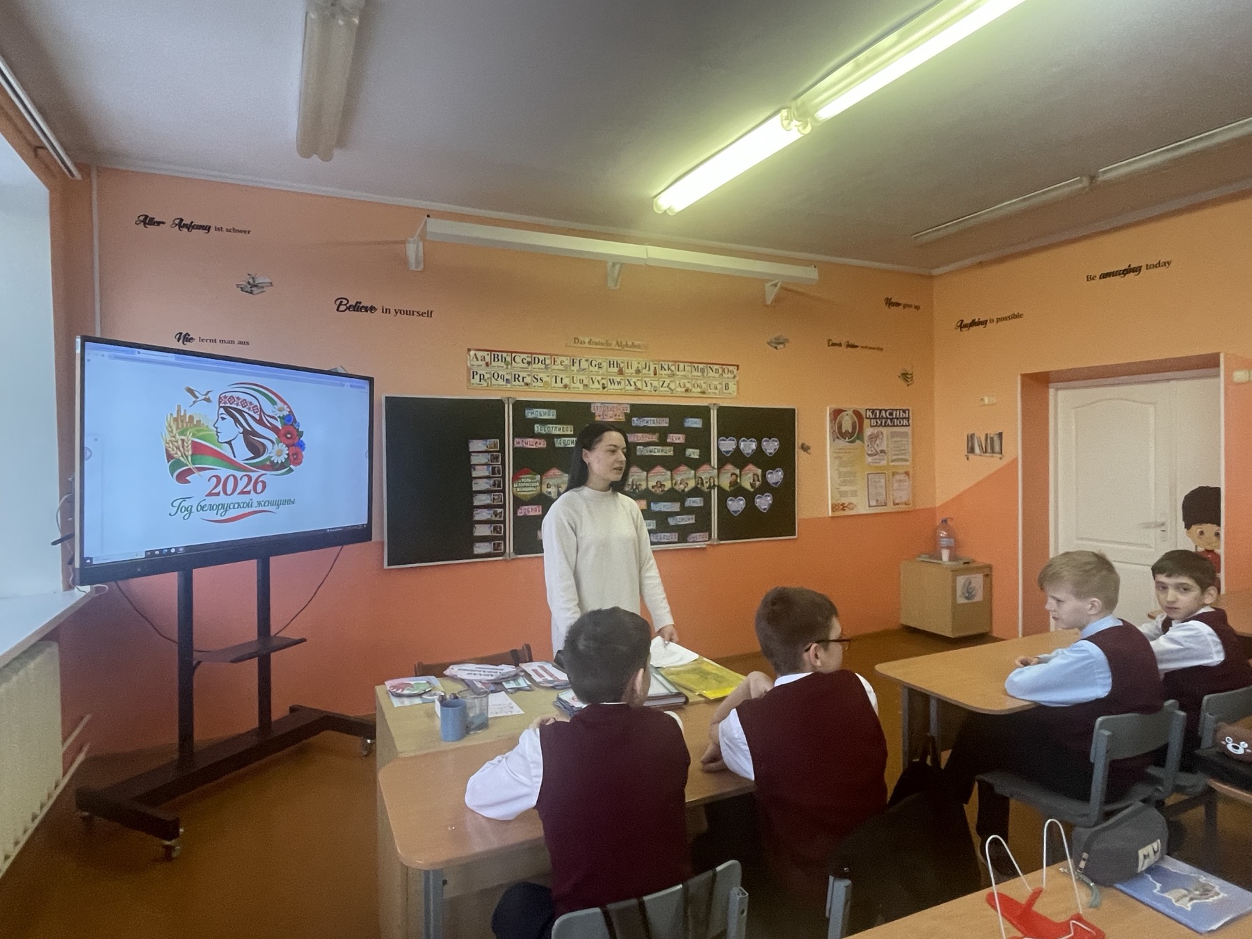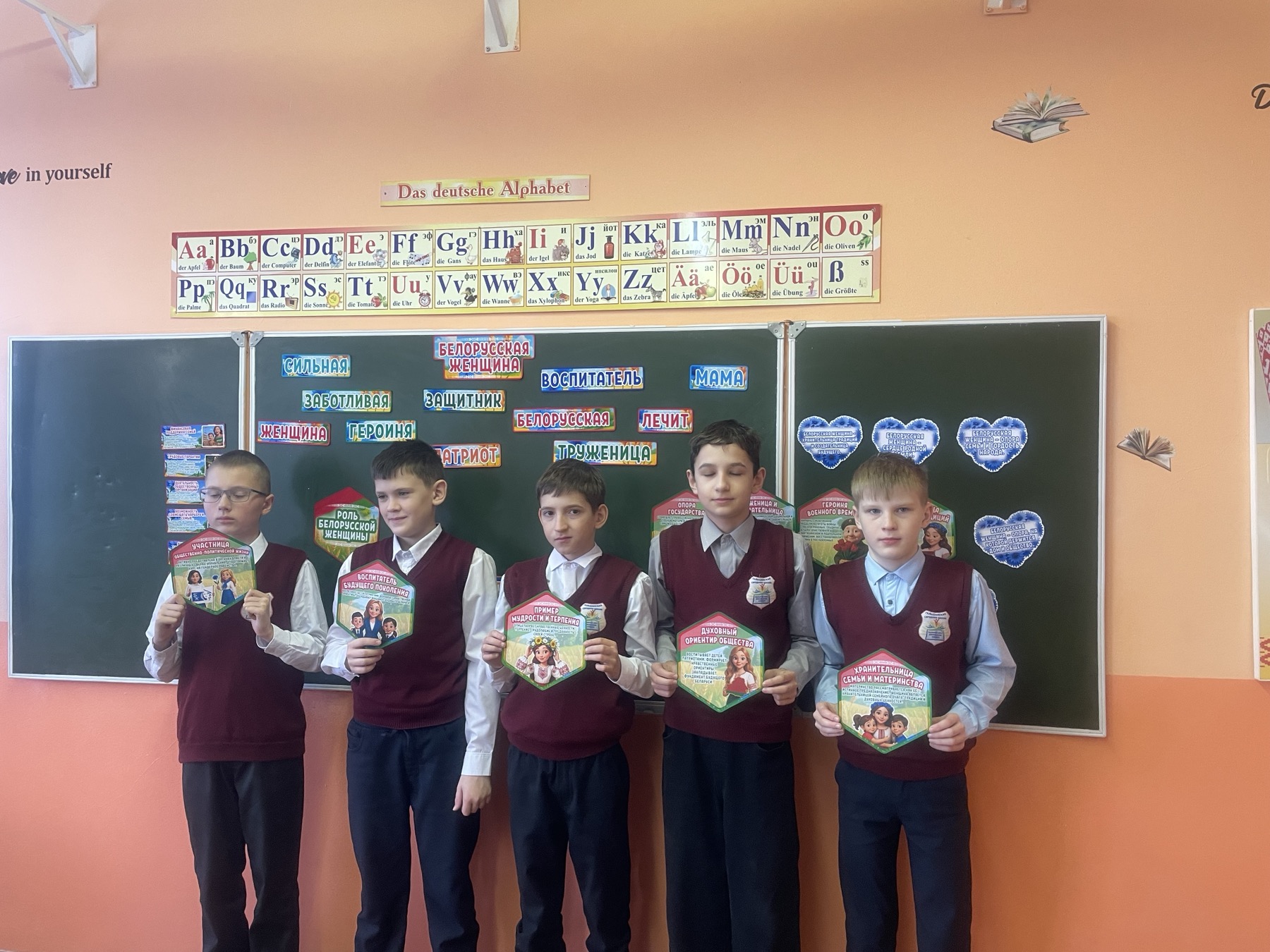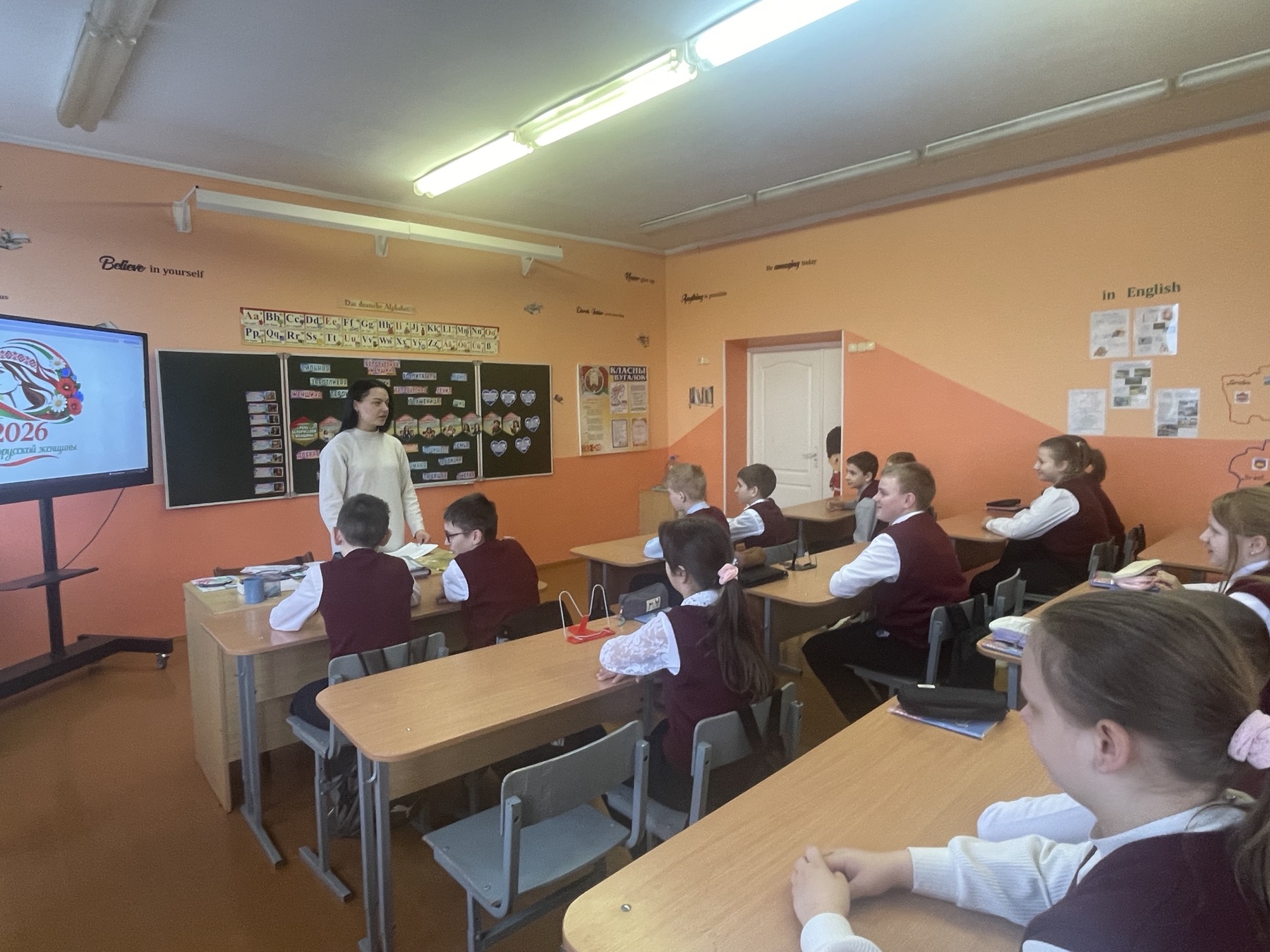 Урок приурочен к общереспубликанскому празднику – Дню женщин. На протяжении всей истории белорусские женщины играли ключевую роль в развитии общества: воспитывали поколения с традиционными ценностями чести, доброты и стойкости, были нравственным ориентиром, передавая мудрость и духовную силу через века. Современные белорусские женщины успешно сочетают заботу о семье, воспитание детей с работой и общественной деятельностью. Их вклад в различные сферы жизни обеспечивает прогресс белорусского общества. Ребята говорили о женщинах Беларуси, которым присвоено звание «Герой Беларуси» — Дарье Домрачевой и Марине Василевской.